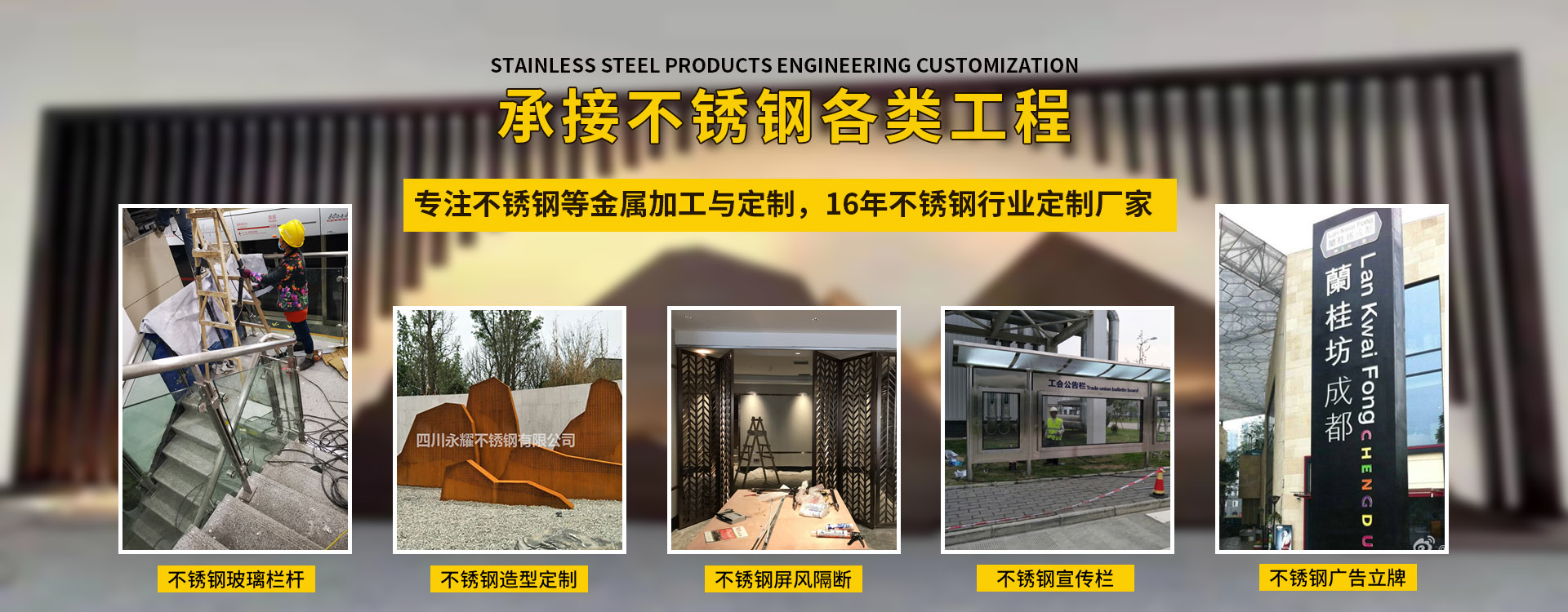 四川永耀不銹鋼有限公司是一家集開(kāi)發(fā)、設(shè)計(jì)、加工、制作、安裝、并承接各種不銹鋼工程為一體的綜合性企業(yè)。多年來(lái)一直在專注于不銹鋼等金屬的加工與研發(fā)。在客戶群體中贏得了良好的聲譽(yù),以專業(yè)專注的精神,致辭力于打造良好的產(chǎn)品和企業(yè)形象,對(duì)每一產(chǎn)品傾注全力,力爭(zhēng)每個(gè)細(xì)節(jié)精細(xì),確保產(chǎn)品具有優(yōu)越的性能,優(yōu)美的外觀及優(yōu)良的品質(zhì),使公司產(chǎn)品深受廣大用戶的親睞。